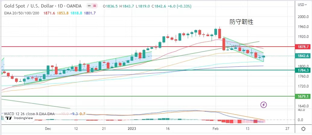 美元,但隨即觸底反彈,顯示多頭的韌性,金價上周最高曾見1870.8美元,以1842.6美元收市,一星期計累跌22.7美