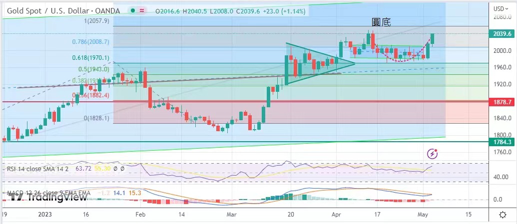 **文章完結時,金價原來一度升至2067美元,離歷史高位僅8美元!**