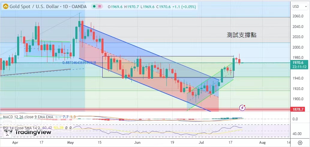 帶來壓力,金價測試1970美元支持,期待在盤整之後再闖高位。今日維持勗日建議波幅於1968美元至1984