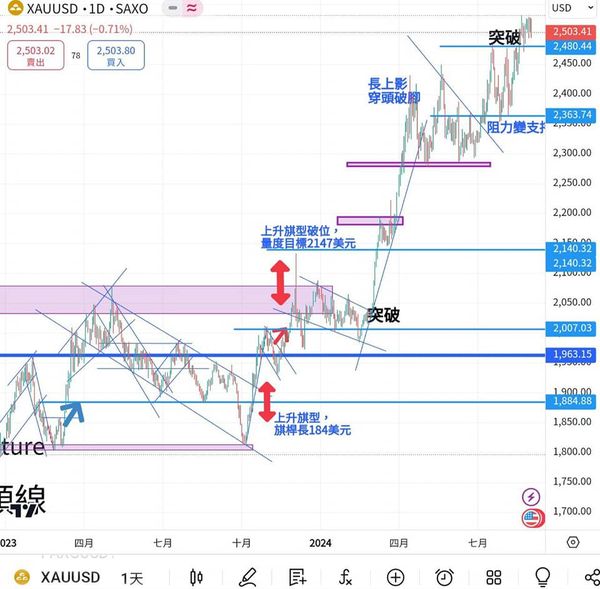 但通脹放緩並沒有刺激金價進一步攀升,反而週五晚見金價回吐至2500下方後方能企穩,可見市場已開始無視通脹憂慮,而焦點將落在勞工市場表現。