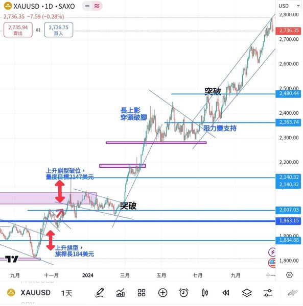 週五晚,非農意外轉弱,僅限增加1.2萬人,遠遜預期,受數據影響,美國今週再減息0.25厘概率升至100%,金價上衝至2761位置,但未有創出新高。今次非農意外下跌主要受颱風及罷工消息影響,並非就業情況惡化,因此限制了升幅;金價尾市甚至回落。