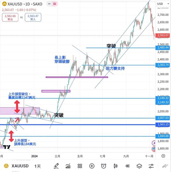 上週金價暴瀉,美元受惠於Trump trade-特朗普交易而急升,以美元計價的黃金首當其衝,加上特朗普上場,避險需求急降,黃金需求下挫,令金價更是雪上加霜。週初時間,金價已乏力上衝2700關口,並向2600方向下行。