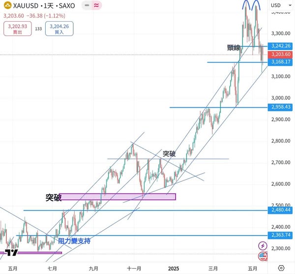 另一方面,地緣政治風險減退亦降低了黃金需求。美國總統特朗普訪問中東,美伊協議有望緩解中東糾紛,及俄烏再啟和談,均削弱了黃金避險功能,金價多次失守3200關口,週末收盤前險守收市報3203。
