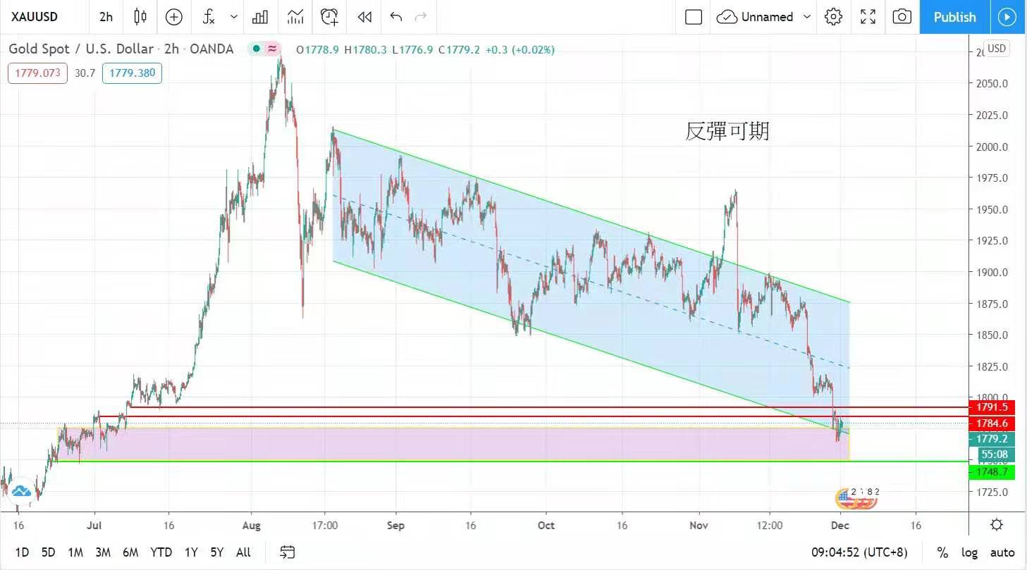 最差跌至昨日提及的長綫技資者人場價的1764美元即快速反彈。雖然黃金暫時受疫苗消息打壓,但在全世界央行實施量化寬鬆,與及持續低息的環境下,待疫苗消息被消化後,