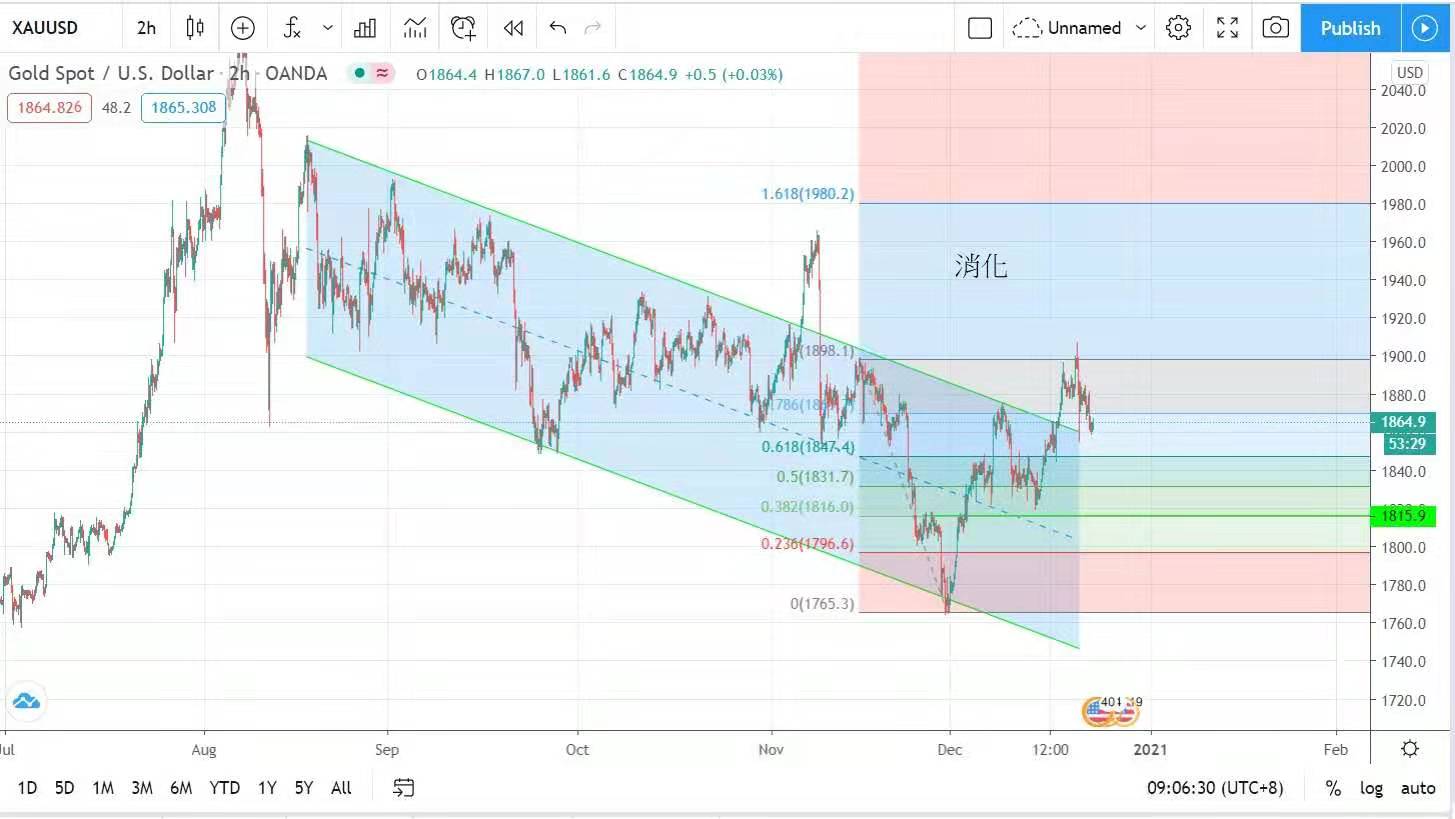 英國現變種病毒,資金流向美元避險,美元指數升勢已喘定於90.5水平,候任總統拜暗示將擴大量化寬鬆政策方向有利金價。預料今日主要波幅在1858至1878美元之間。
