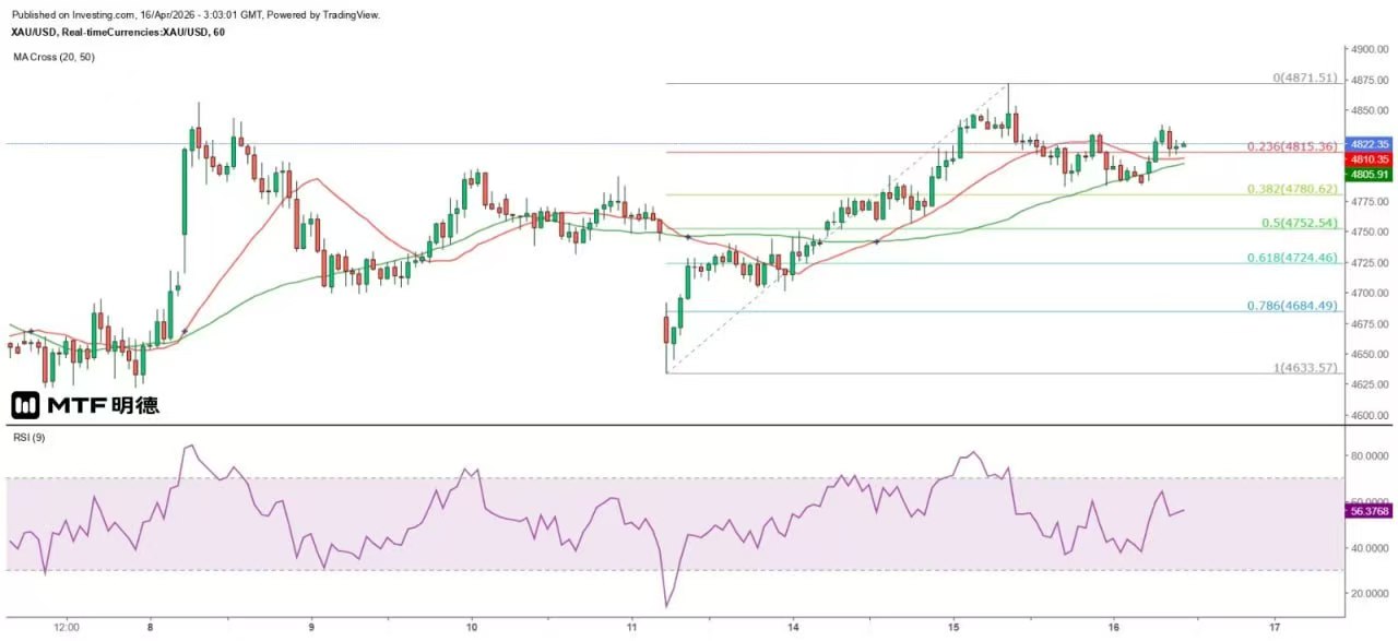 《金價4810美元成短期強支持》16/4/2026 11:01 完稿