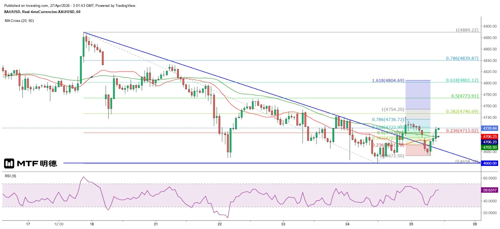 《金價日內料持續反彈》27/4/2026 11:01 完稿
