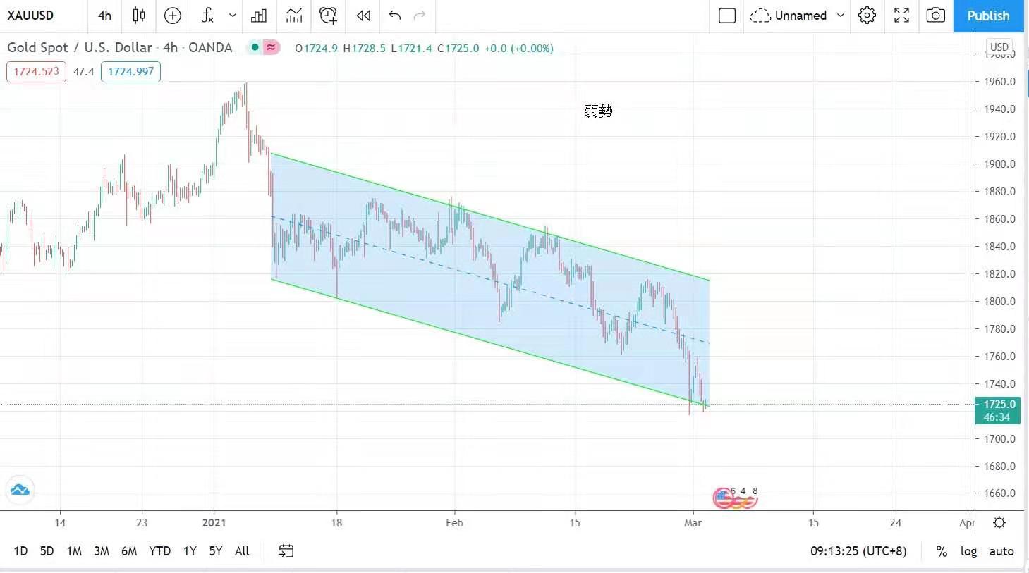 金價近期弱勢,不論美國國債孳息率,股市美元甚至加密貨幣上升或下跌,金價都向下跌,並已作連續五天連跌,