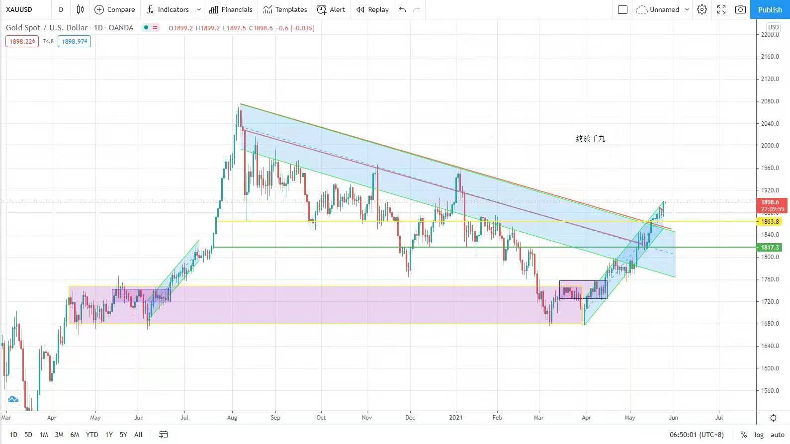 有機會在短期調整,但依然看漲後市,下一目標1928/47,較強支持在1872/67。今日建議波幅在1888-1906。