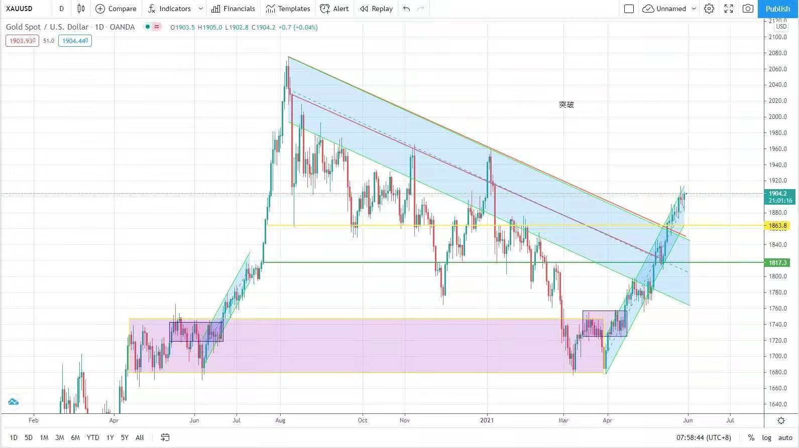 大家可以緊密留意。金市上週三開始連續三日衝擊1900美元的心理關口便遇沽壓,但普遍回落至1888美元已獲承接,上週最高升至1913美元,雖然上星期五因核心個人消費
