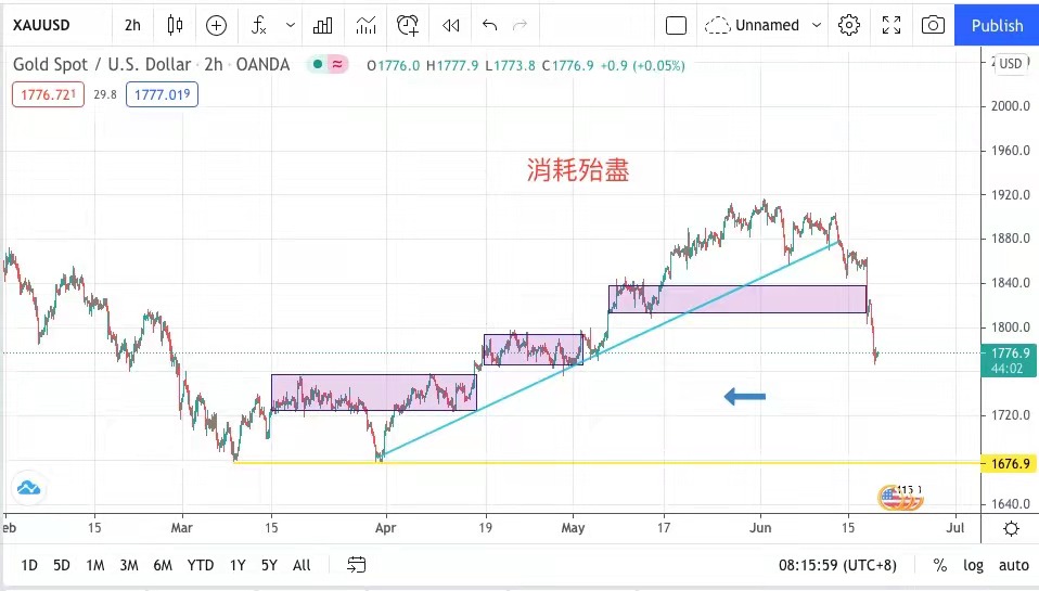 逆回購利率及超額準備金利率等小動作顯示收水決心,金價繼續大幅下瀉。從走勢上看,金市連續兩日大瀉已幾乎將3月到4月長時間的上升動