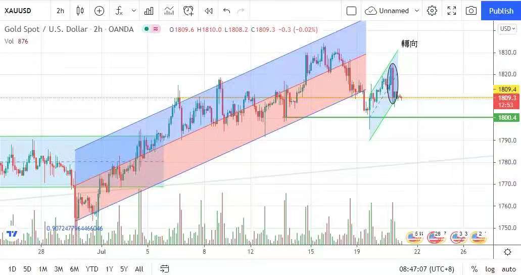 凌晨2時宣佈議息,雖然之前曾預料估在7月分議息日子前,金價仍將只是震盪,但因動能漸轉弱,在議息前有機會再次考驗1800美元的下方支持。