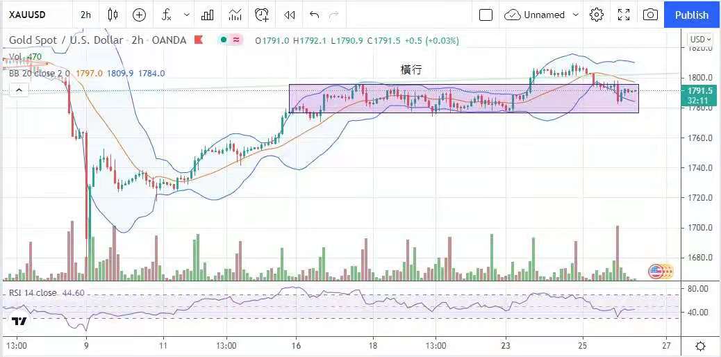 投資者關注在美國週四開始的全球央行年會,美國10年期國債孳息率急升至1.34%,創近兩星期新高,主要非美貨幣受壓,美元指數一度重返93點水平,黃金開市即承壓下跌,空頭一舉攻破1800美元的重要關口,進入美市,藉比較理想的美國經濟數據刺激下,金價跌幅擴大,最低見1783美元,收於1791美元,跌12美元。