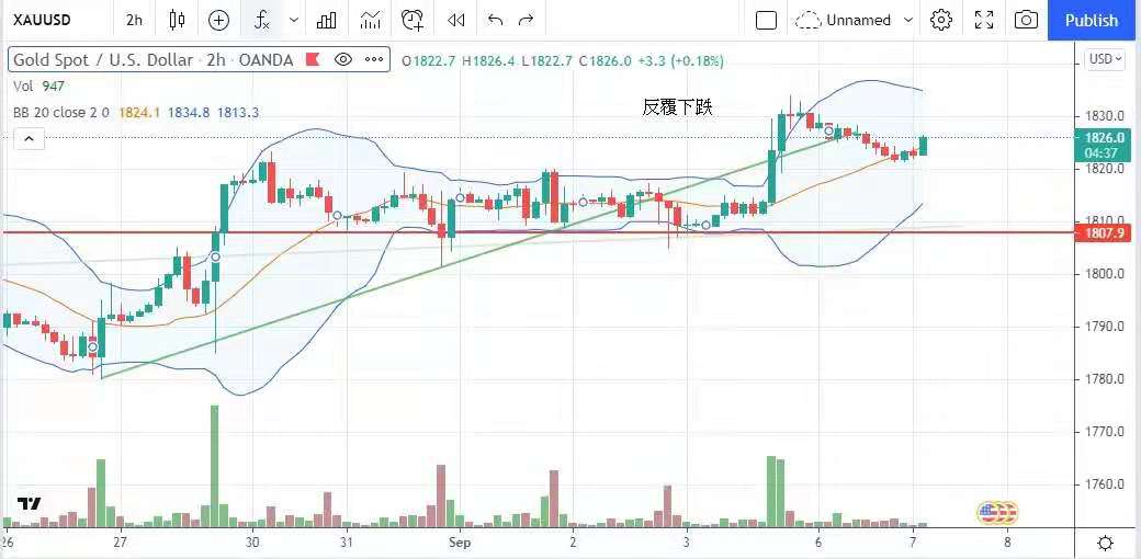 昨日為美國勞動節假期,金市匯市較靜,美元指數微漲,金市反覆下跌,但金價波幅收窄至不足10美元,最高見1830美元,最低見1822美元,於1823美元收市,跌5美元。
