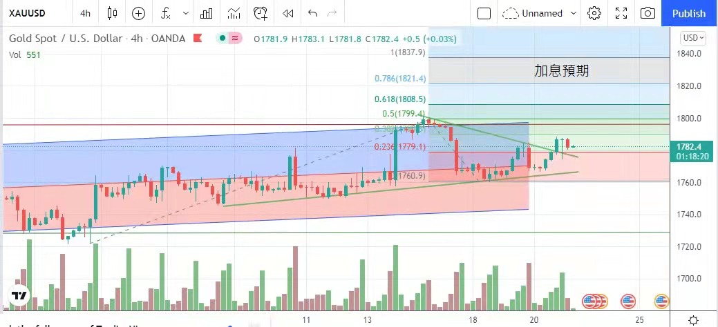 加上歐洲股市上升,打壓美元表現,美元指數徘徊在94點上下。美元低迷致使金價收益,金價昨日低位見1767美元,最高曾升至1789美元,對其升息預期受益,