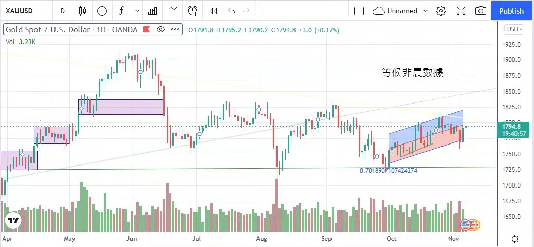 金價試闖1800美元,昨日美國公布上週首度申領失業金人數連續五周下跌,顯示勞動力不斷改善,今晚有非農就業數據,金市可能波動下跌。今日建議