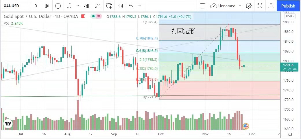 再加據,金價最終打回完形。市場已消化美聯儲提前加息的消息,可能要到12月的議息會議才有進一步指示,金價才再較大反應。但金價已是弱勢,