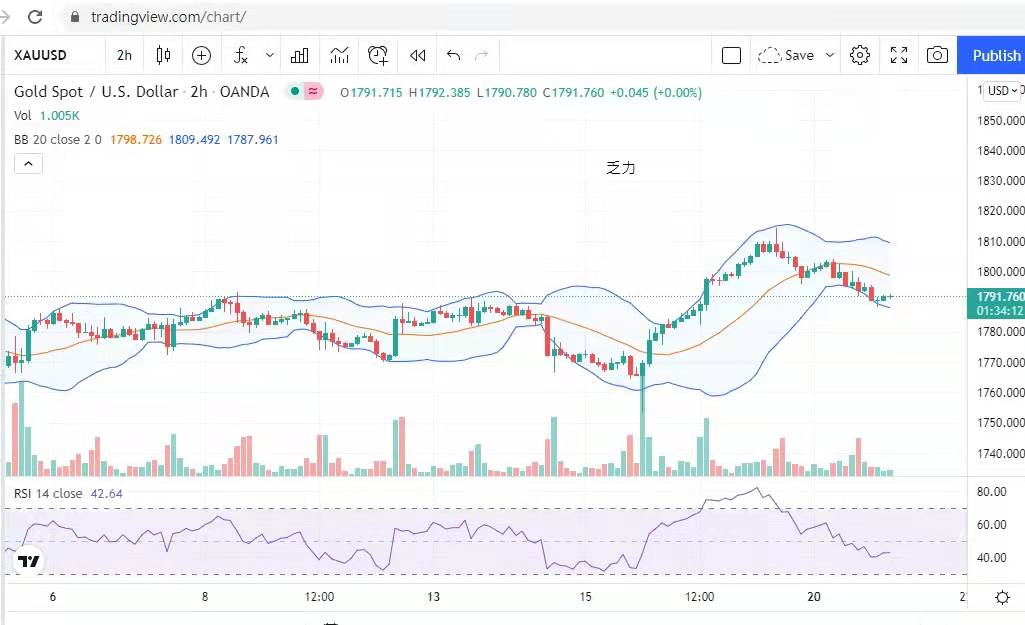 甚至美元都下跌。黃金自然也難獨善其身,金價昨日曾升穿1800美元,最高見1804.2美元,最低見1788.4美元,以17980.6美元收市,跌7.6美元。