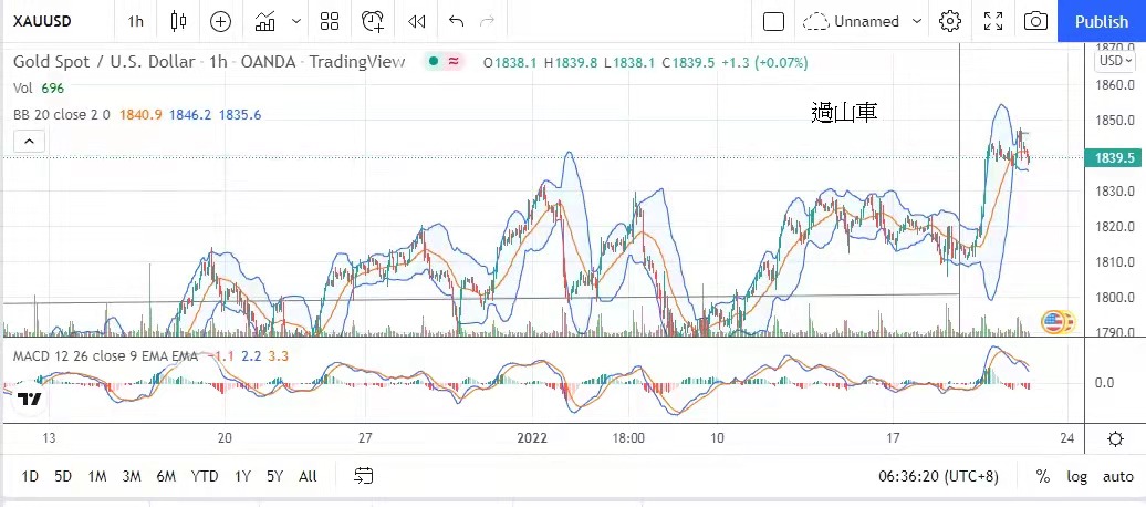 金價拉升近十美元,最高見1847.9美元。然而,市場仍擔心美聯儲下周議息的動向,金價在創近金周以來高位回落。預料在下周議息日子前仍將波動,