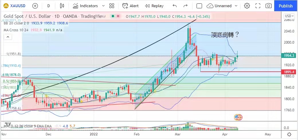 阻力,並直達1970美元目標,之後回順至1950美元下方收市,走勢上彷彿測試是否頂底倒轉。今日建議波幅1946美元至1969美元。
